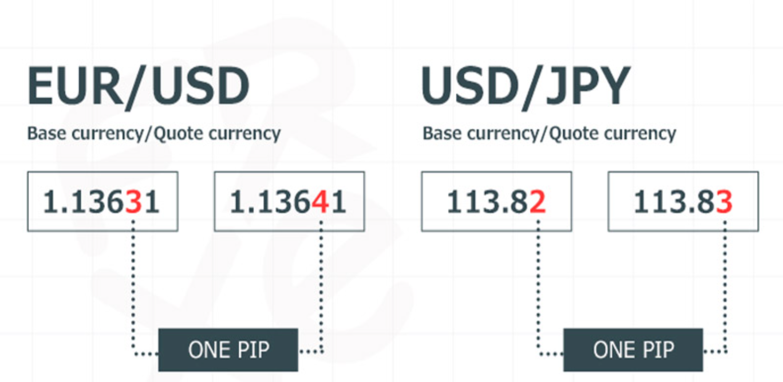 Ví dụ: Cặp tiền tệ EUR/USD có tỷ giá tăng từ 0.99564 lên 0.99574. Khi đó ta nói cặp tiền này sẽ có tỷ giá tăng lên 1 pip.